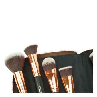 12-teiliges Pinsel-Set in Reißverschlusstasche in der Farbe Schwarz/Kupfer. Synthetik-Haar. Maße: offen 31,5 x 23,5 cm.