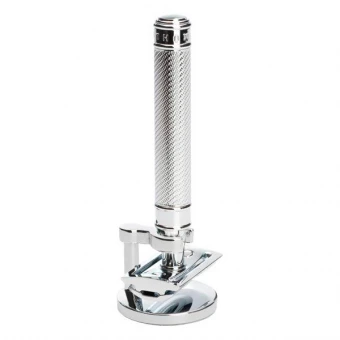 Halter für MÜHLE Rasierhobel R89, R106, R41, R101 aus solidem Messing, hochglanz verchromt.