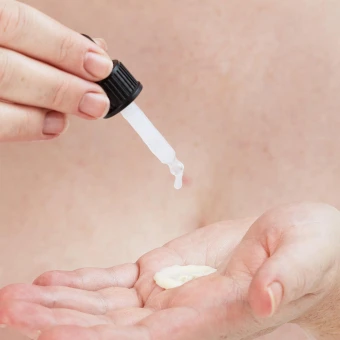 Anwendung: 1 bis 2 Tropfen direkt auf die Haut auftragen, bzw mit Feuchtigkeitscreme mischen, Serum oder Gesichtsöl.