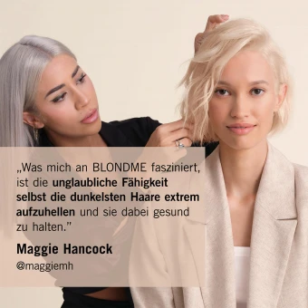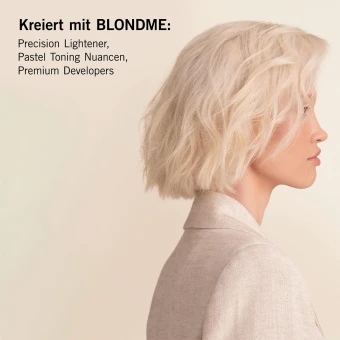 Der BLONDME Precision Lightener mit integrierter Anti-Metal Bond Protection Technologie bietet eine Swell-Control Formulierung, die das Quellen minimiert und speziell für präzise Applikation auf dem Ansatz entwickelt wurde. Er sorgt für einen nahtlosen Übergang am Ansatz und bietet bis zu 7 Stufen Aufhellung für Ausgangsbasen 3 bis 8 mit minimalem Haarbruch.