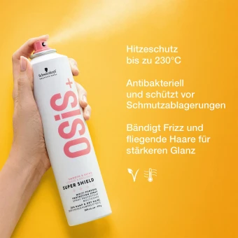 OSiS Super Shield ist ein wahrer Allrounder, ein multifunktionales Schutzspray, das speziell für langes Haar formuliert wurde, um es vor Umweltbelastungen, Hitze und Feuchtigkeit zu schützen. Es bekämpft Frizz, während es das Haar entwirrt, und gibt stumpfem Haar einen dringend benötigten Glanzschub!