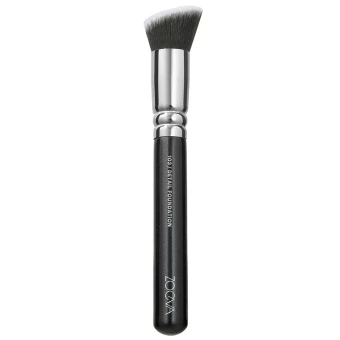 Platziere und verblende Deine Lieblingsgrundierung für ein gleichmäßiges, streifenfreies Ergebnis mit dem ZOEVA 103 Detail Foundation Pinsel. Dank seiner abgewinkelten, dicht gebundenen, flachen Pinselspitze passt er sich perfekt den Konturen des Gesichts an und erzeugt beim Auftragen eine mittelstarke Deckkraft, ohne Schichten zu bilden.